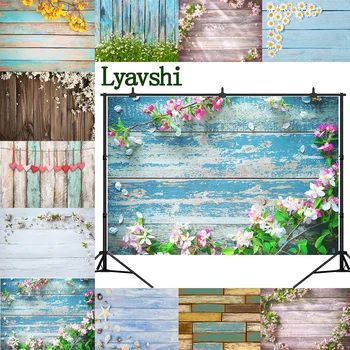 Lyavshi Flowers Wooden Board Backdrops Planks Newborn Portrait Birthday Party Decor Backgrounds Photography for Photo Studio